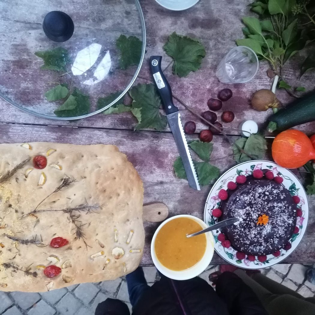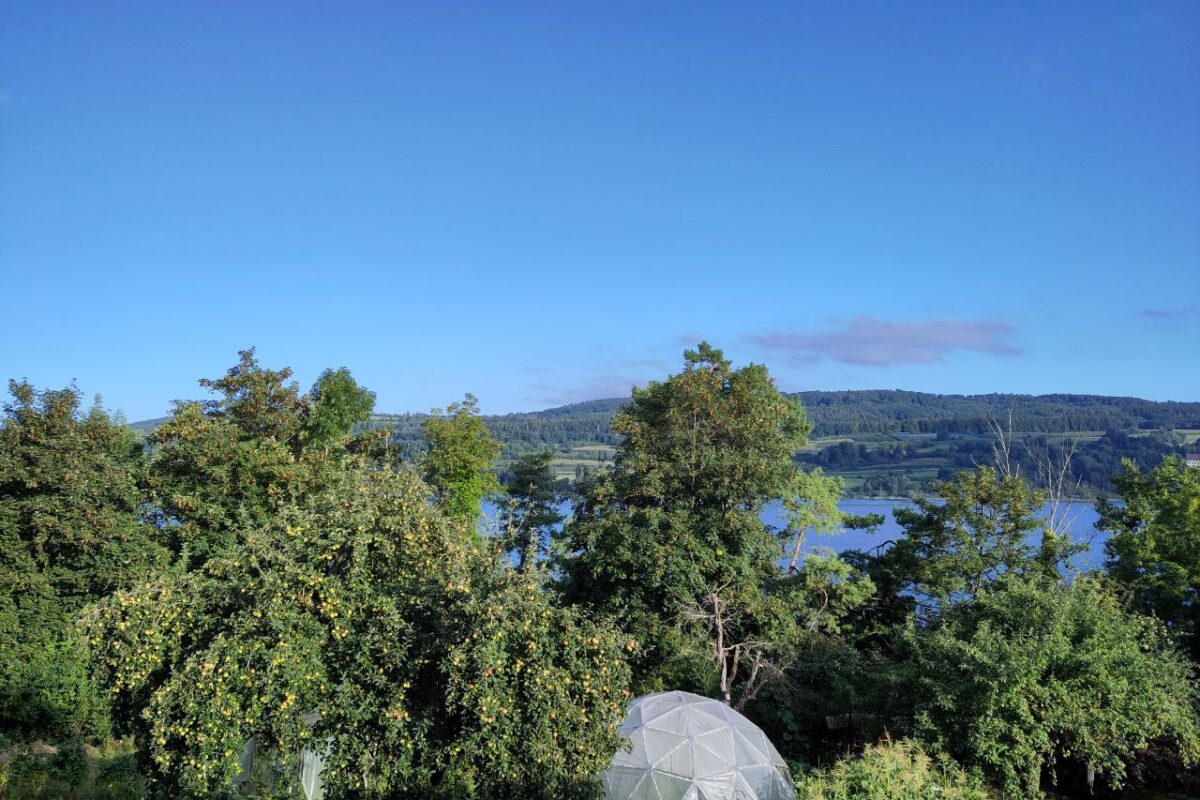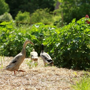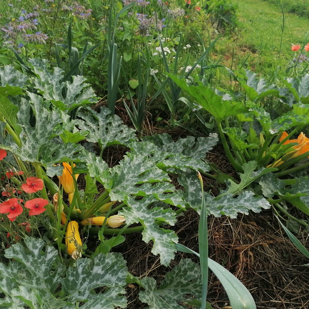 Von Beeren über Zucchetti bis hin zu Pilzen wächst und gedeiht hier alles nach den Regeln der Permakultur. Es gibt einen Waldgarten, ein Erdgewächshaus aus Recycling-Fenstern mit Aussenküche, eine Kräuterschlange und auch unsere Laufenten und Schweizerhühner bereichern die Szenerie. Die ansässigen Bienen summen um die nahrhaften Blüten – kurz: Lebendigkeit umgibt diesen Ort.